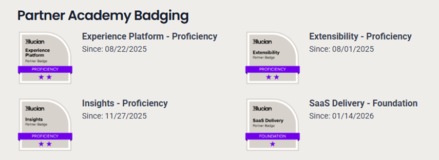 Our Advantage Tier status is built on a strong portfolio of Ellucian Partner Academy badges, including Proficiency-level recognition in Experience Platform, Extensibility, and Insights, along with our Foundation-level SaaS Delivery badge.
