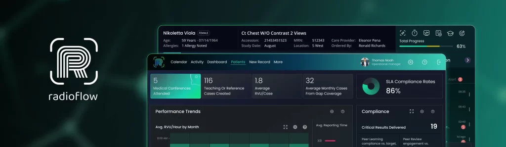 The platform behind this architecture is not a simple viewer or another reporting tool. It is a cloud native radiology command center that sits on top of the systems groups already use, including PACS for image storage, RIS for scheduling and exam management, dictation tools, reporting systems and other clinical applications that keep a radiology practice running. It brings all of them together in one clean cockpit for the team’s daily work. Radiologists see one intelligent worklist instead of dozens of windows, they get clinical context in one place and they can move through their day without fighting the tools.