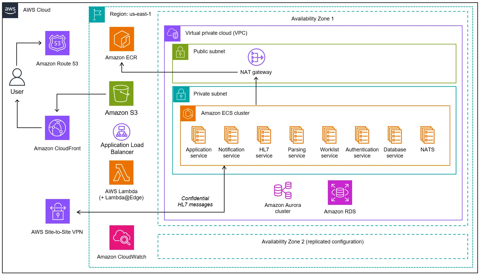 This AWS foundation gives the platform exactly what a commercial healthcare product needs. It stays available even during zone failures or deployments, so radiologists never lose their worklists. It scales cleanly as new clinics join or message volumes spike, which means the company can grow without redesigning its backend.