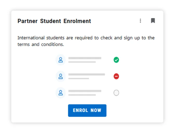 Partner students now complete enrolment through a short, focused flow that shows only what applies to them. There is less friction, less uncertainty, and a clear point of completion.