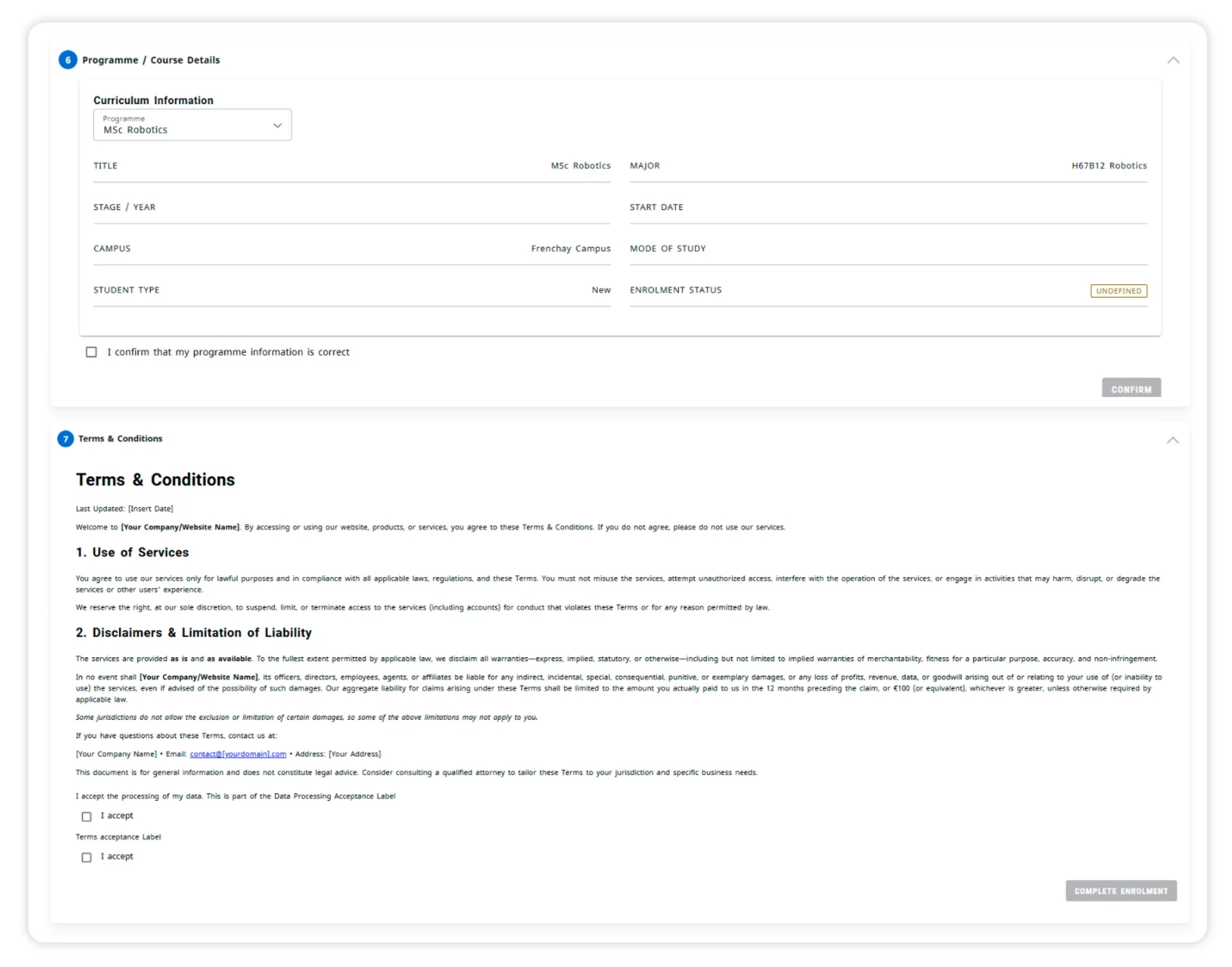 The institution still needed the essentials covered. Student data had to be reviewed and confirmed. New students had to formally accept terms and conditions. What did not make sense was forcing this group through a full enrolment process designed for very different scenarios.