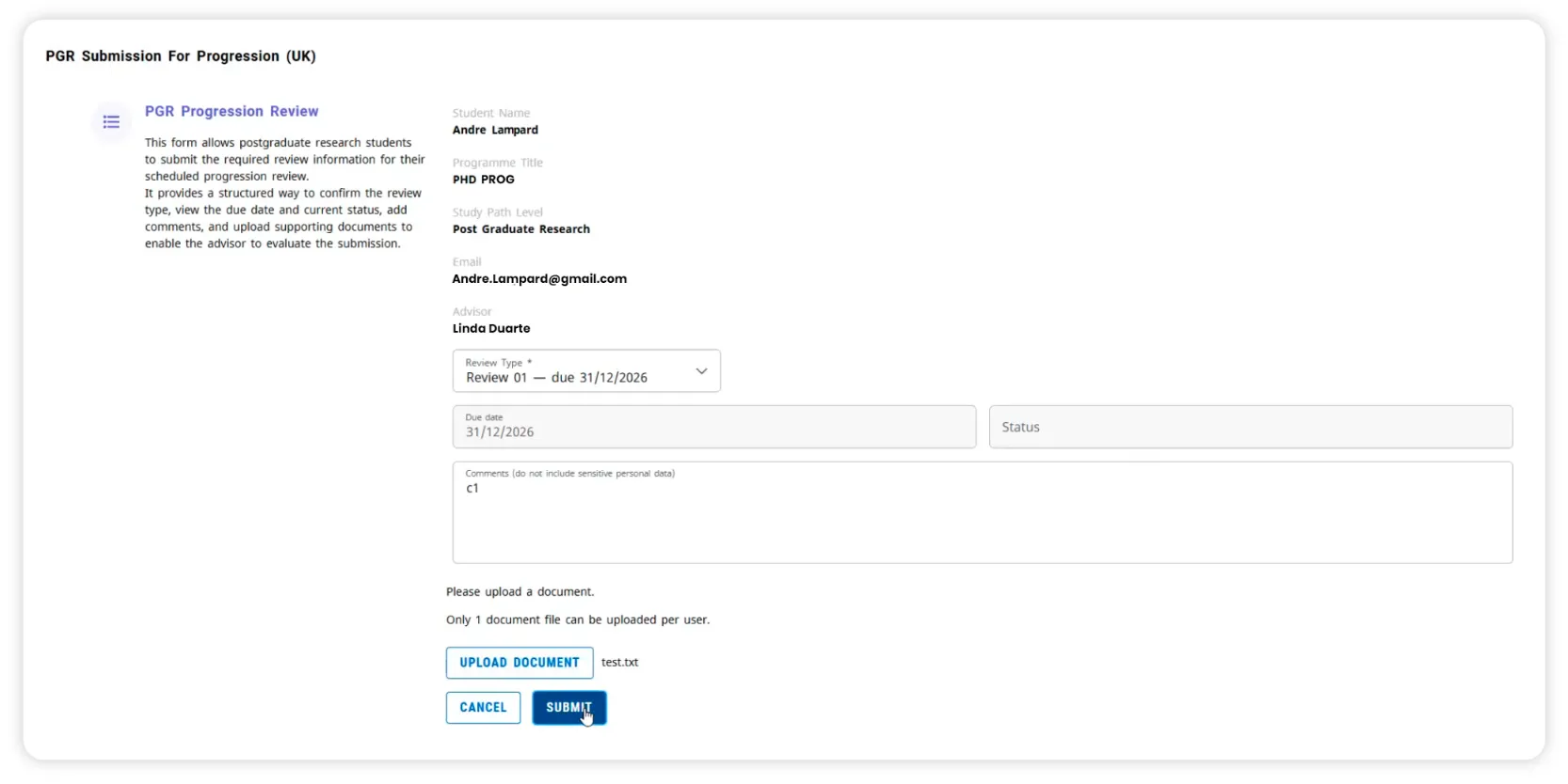 At the platform level, the result is a UK-ready, reusable PGR annual review workflow that institutions can adopt rather than rebuild. It is SaaS-native, built on standard components and existing data structures, which makes it easier to support and scale. More importantly, it establishes a repeatable pattern for translating UK-specific academic processes into reliable SaaS workflows.