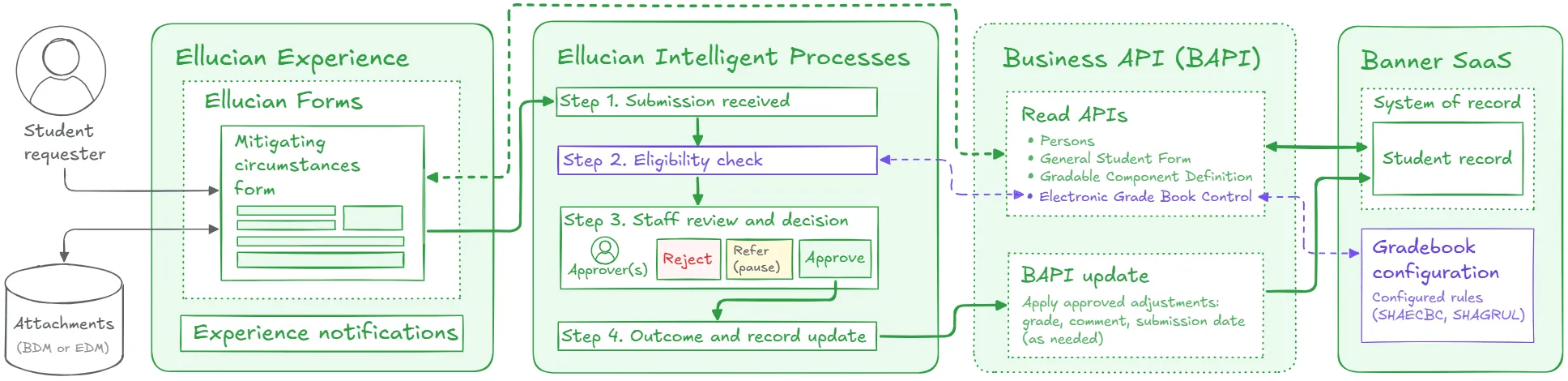Ellucian has been steadily investing in UK-oriented SaaS solutions that institutions can adopt with confidence. Together with ABCloudz, this work has already produced reusable workflows, integrations, Experience cards, and SaaS-ready alternatives to logic that previously depended on local processes or custom code. The Mitigating Circumstances workflow follows that same approach, focusing on a process that institutions can adopt as-is rather than redesign for every assessment cycle.