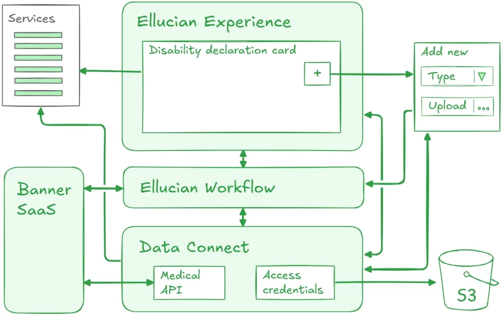 In this blog post, we focus on the Experience card and the Data Connect pipeline that prepares and refreshes the data shown in the GUI. In the same reference architecture, Ellucian Workflow handles the orchestration behind each declaration, including review, approvals, notifications, and system updates. We cover that Workflow layer in the companion post on automating disability declaration business processes.
