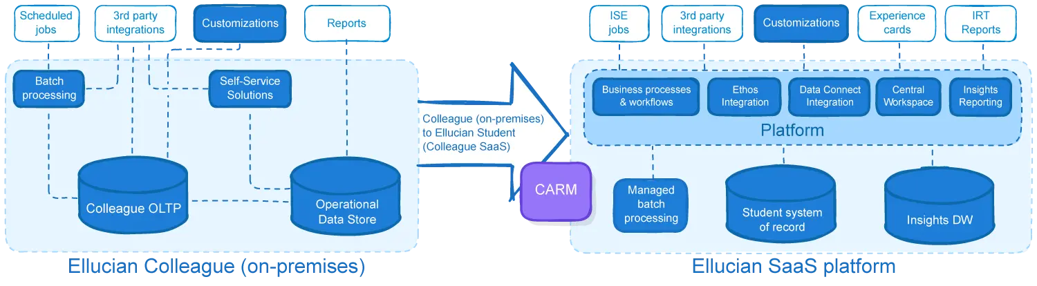 Using Ellucian CARM, as part of Ellucian’s Navigate to SaaS approach, we align institutional processes and configurations with standard SaaS capabilities and supported practices. This step explicitly identifies gaps between current practices and SaaS delivery expectations, enabling informed decisions about process and operational changes before implementation begins.